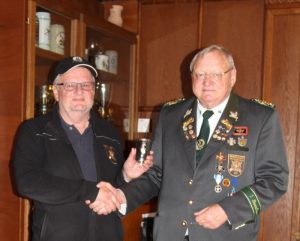 Bild: von links: 2. Schützenmeister Hans-Joachim Ohnemüller, Wolfram E. Mewes, Gewinner des Eninger Bechers