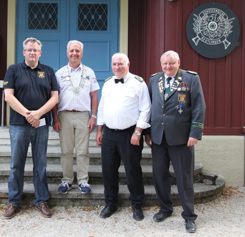 Bild: von links Dr. Eckart Reicherter, Schützenkönig Konrad Walter, Wilhelm Behn, Wolfram E. Mewes.