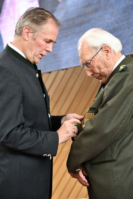 Beim diesjährigen Landesschützentag erhielt der Ehrenoberschützenmeister der Schützengilde Reutlingen, Herr Achim Honer, aus der Hand des Präsidenten des Deutschen Schützenbunds, Hans-Heinrich von Schönfels, das Ehrenkreuz in Bronze (Stufe 3) des Deutschen Schützenbunds.