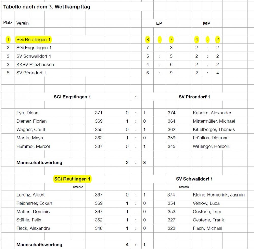 RWK 21/22 – Ergebnisse vom 3. Wettkampftag Luftgewehr Veröffentlicht vonadmingilde 29. November 202129. November 2021 Am 3. Wettkampftag gewann die Luftgewehrmannschaft der SGI Reutlingen gegen Schwalldorf mit 4:1. Die Ergebnisse und Bilder im Einzeln: